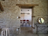 - Séjour de 40 mètres carrés, avec grande hauteur de plafond et poêle à bois.
